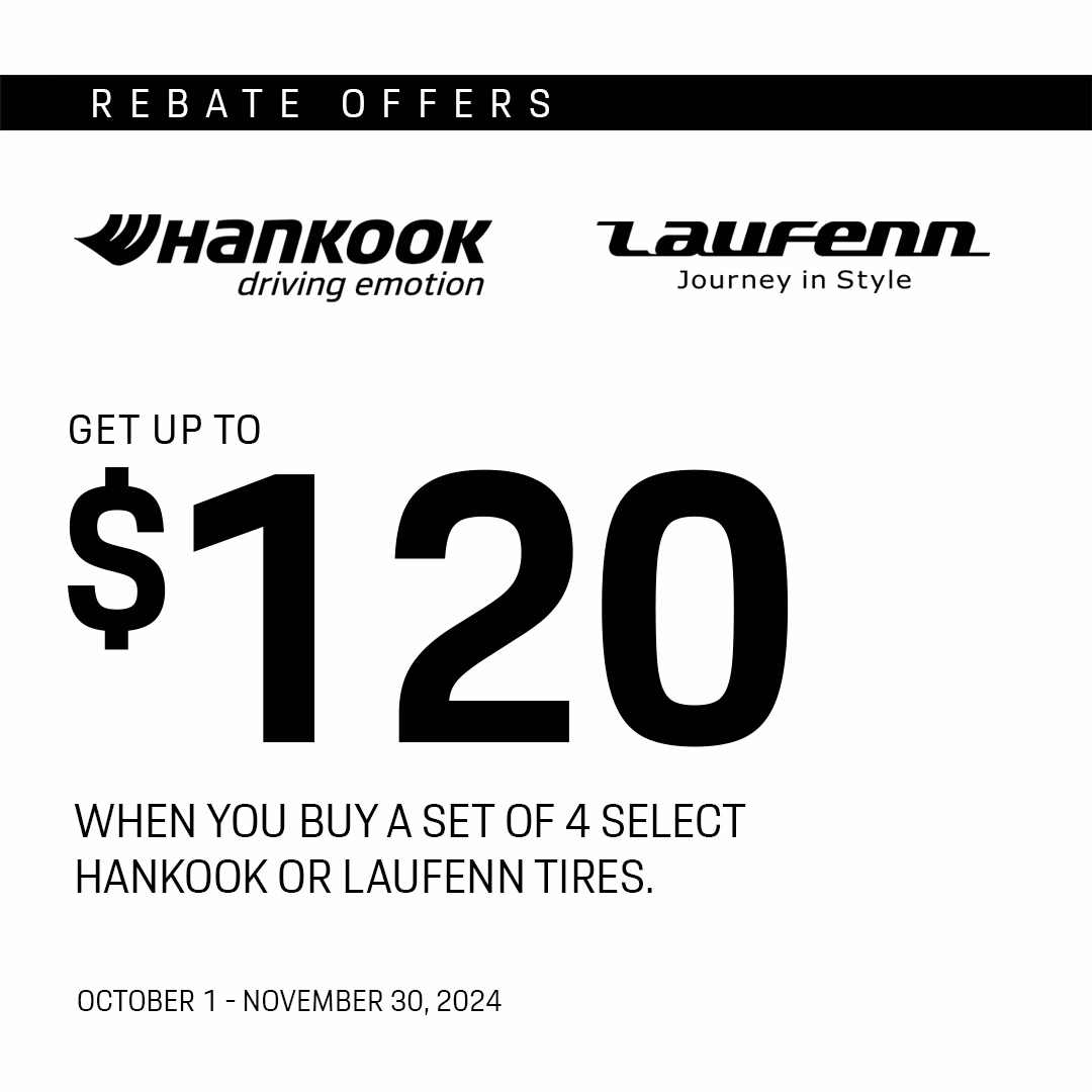 Take advantage of our Winter Tire Sale with up to $120 rebates on premium tire brands, including Hankook, Laufenn, Goodyear, Dunlop, Pirelli, and Bridgestone! Browse our wide selection of high-quality winter and snow tires for sale—this limited-time offer gives you unbeatable deals on winter tires. You'll find great options for snow tire deals or the best winter tires.